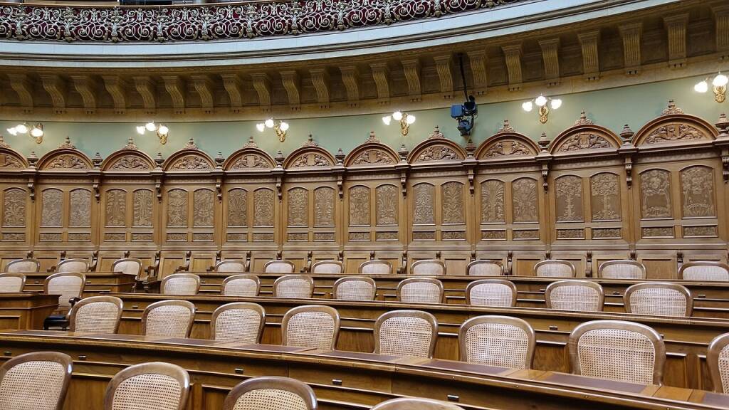 Das blumige Gestühl der Ständeräte im Nationalratssaaal, als Hintergrund für blumige Reden. Ein kleiner Rückblick auf die vorletzte Jahrhundertwende.