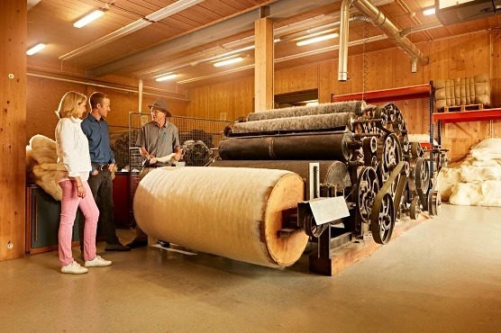 Die Führung zu den Tiergehegen zur Einstimmung und anschliessend durch die Werkstätten und Fabrikationshallen war sehr lehrreich. Wer kennt schon alle die verschiedenen Wolllieferanten, angefangen von diversen Schafen über allerlei Ziegen bis zu den Kamelen, in den unterschiedlichen Feinheit- und Qualitätsstufen.