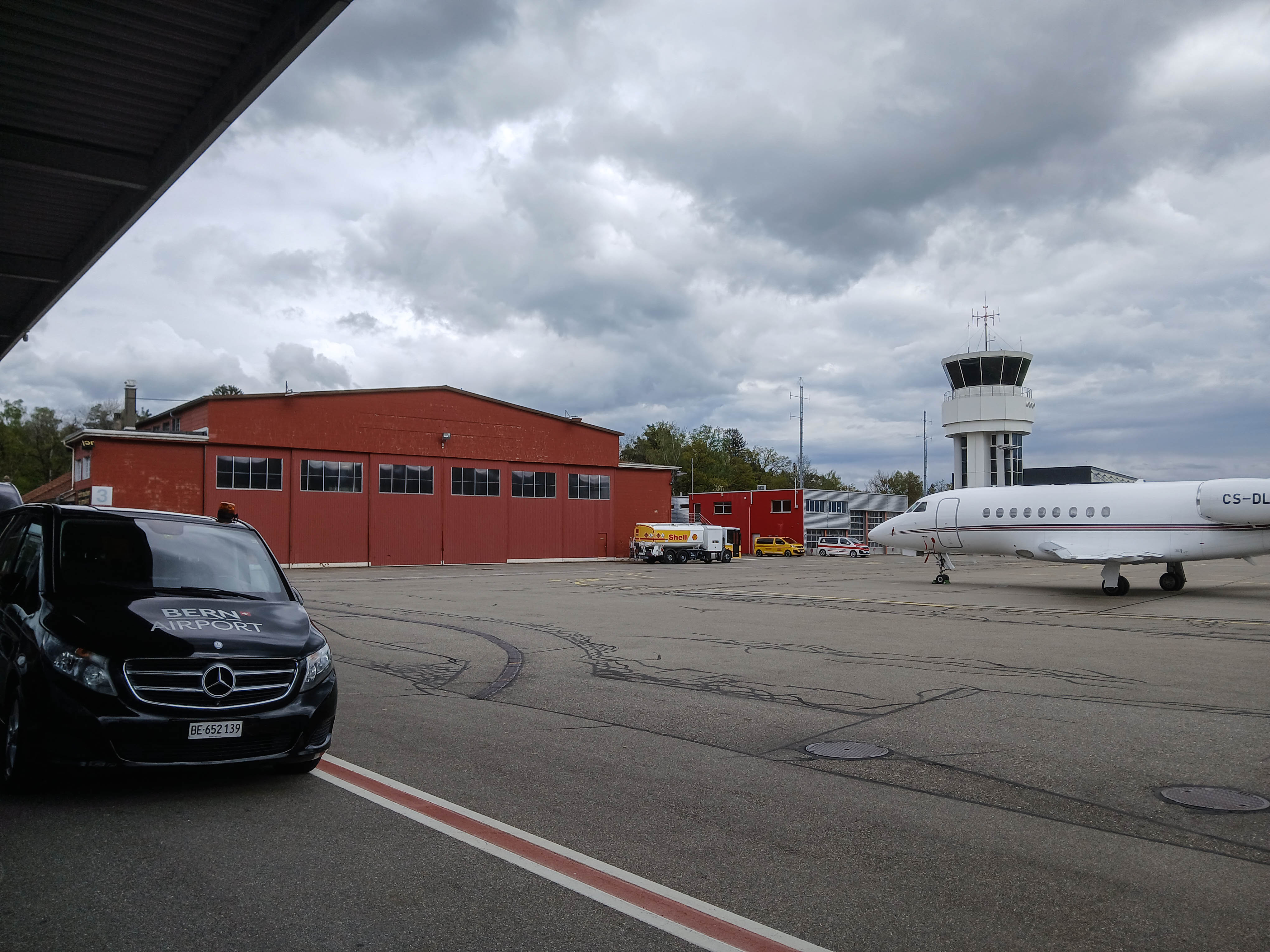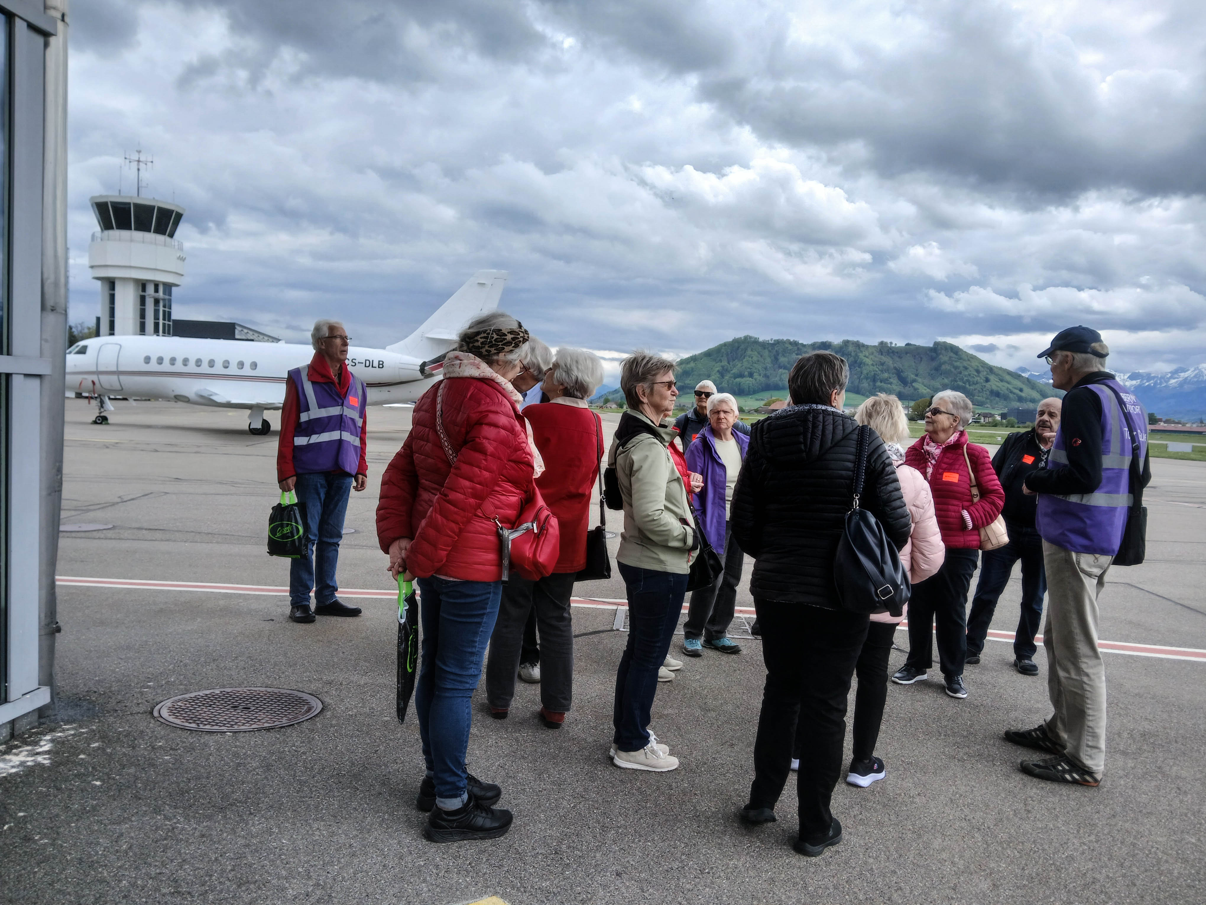 Eigentlich sollte der Flugplatz bei Belp "Bern Airport" nach internationaler Schreibweise genannt werden, denn international ist auch seine Anbindung im Flugverkehr. Das haben wir Bärehöck-Senioren während der gut anderthalbstündigen Führung erfahren. Etwas weniger streng und aufwändig als z.B. in Kloten geht hier das Ein- und Auschecken, die Schalter und Kontrollstellen werden nur bei Bedarf bedient. Alles, auch draussen am Platz und bei der Luftraumkontrolle, ist auf die Berner Verhältnisse reduziert. Auf dem Rundgang konnten wir uns unkompliziert frei am Platz und in den Hallen alles ansehen und wurden ausführlich informiert.