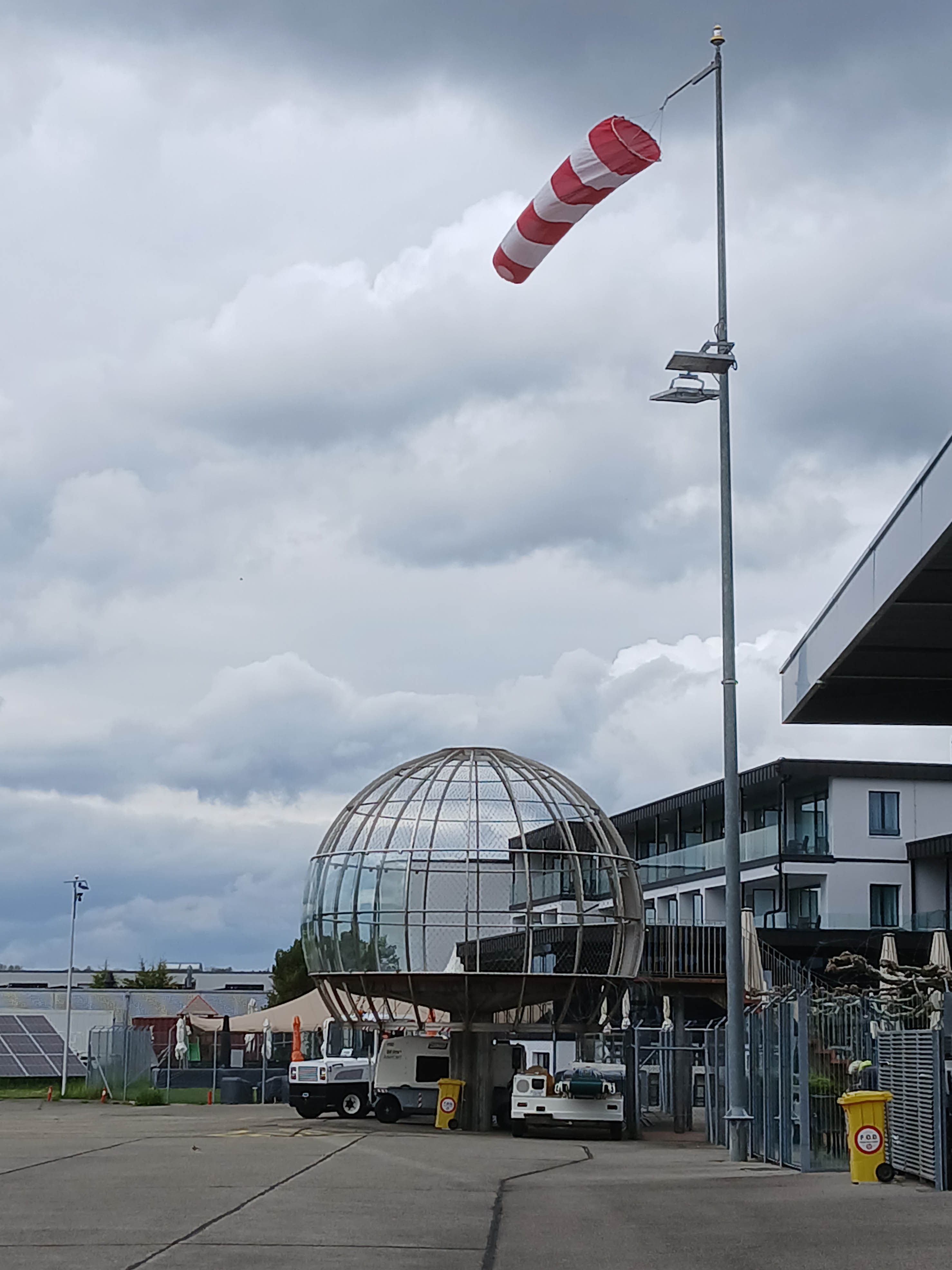 Besucherplattform und Windsack, die Starts und Landungen werden nach der Windrichtung angepasst.
