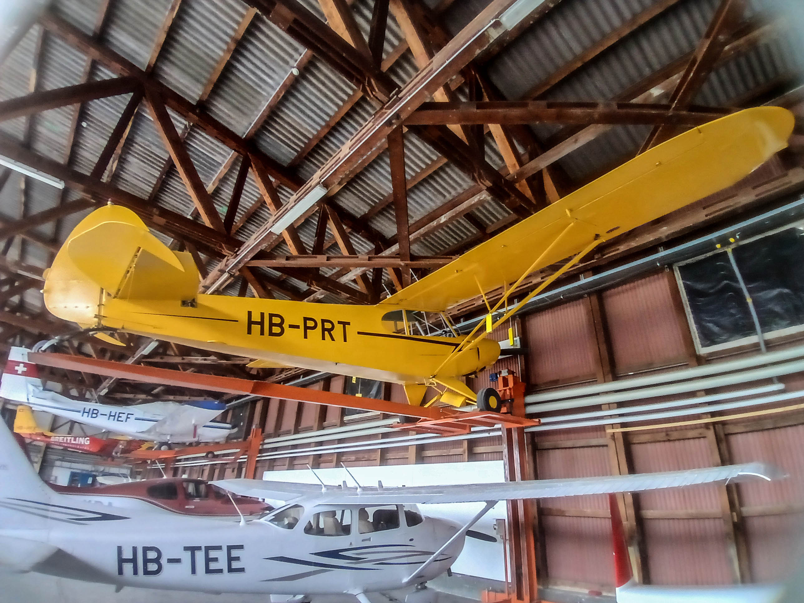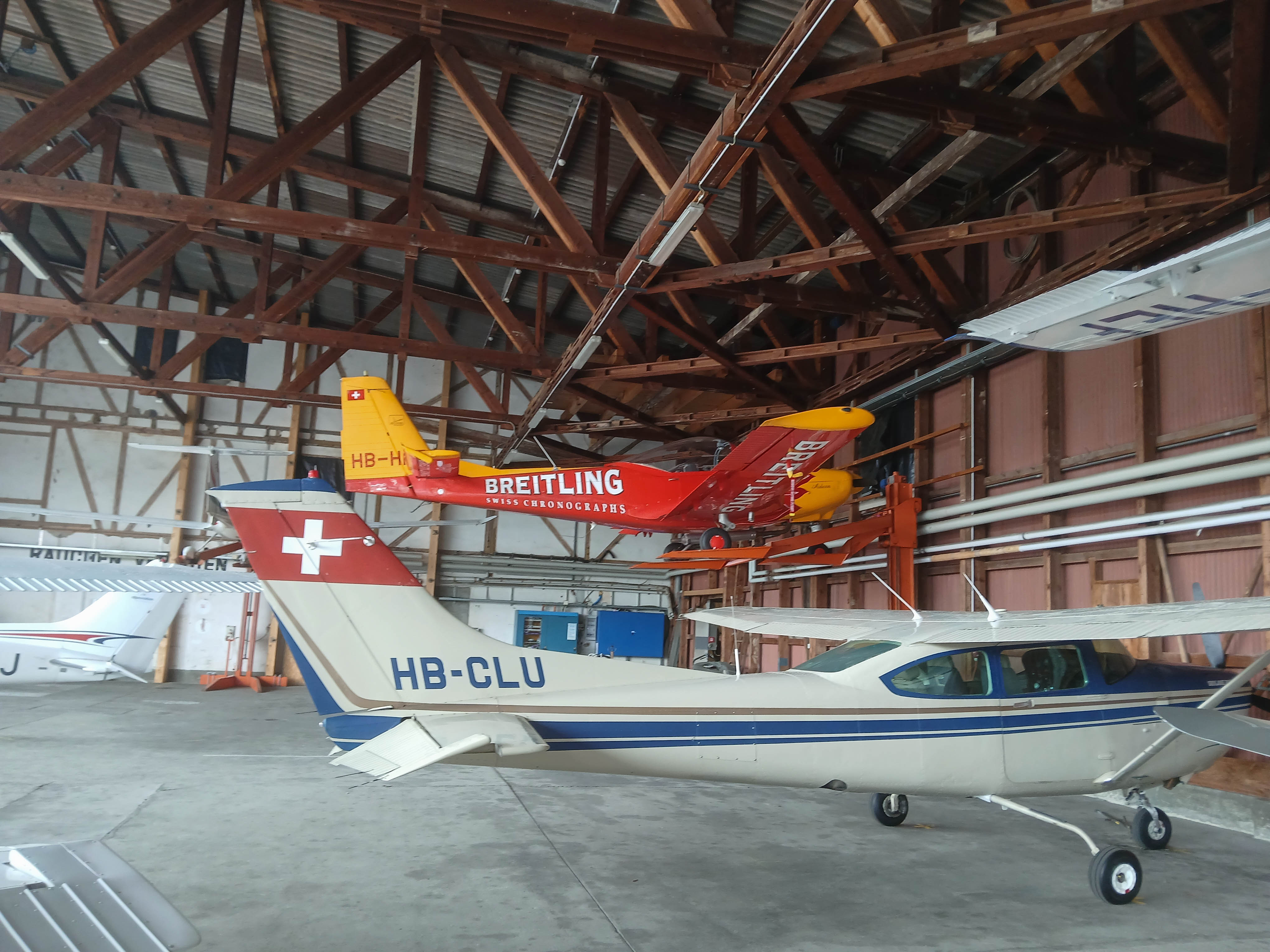 In einem weiteren Hangar sind diverse Privatflieger eingestellt oder gehängt.