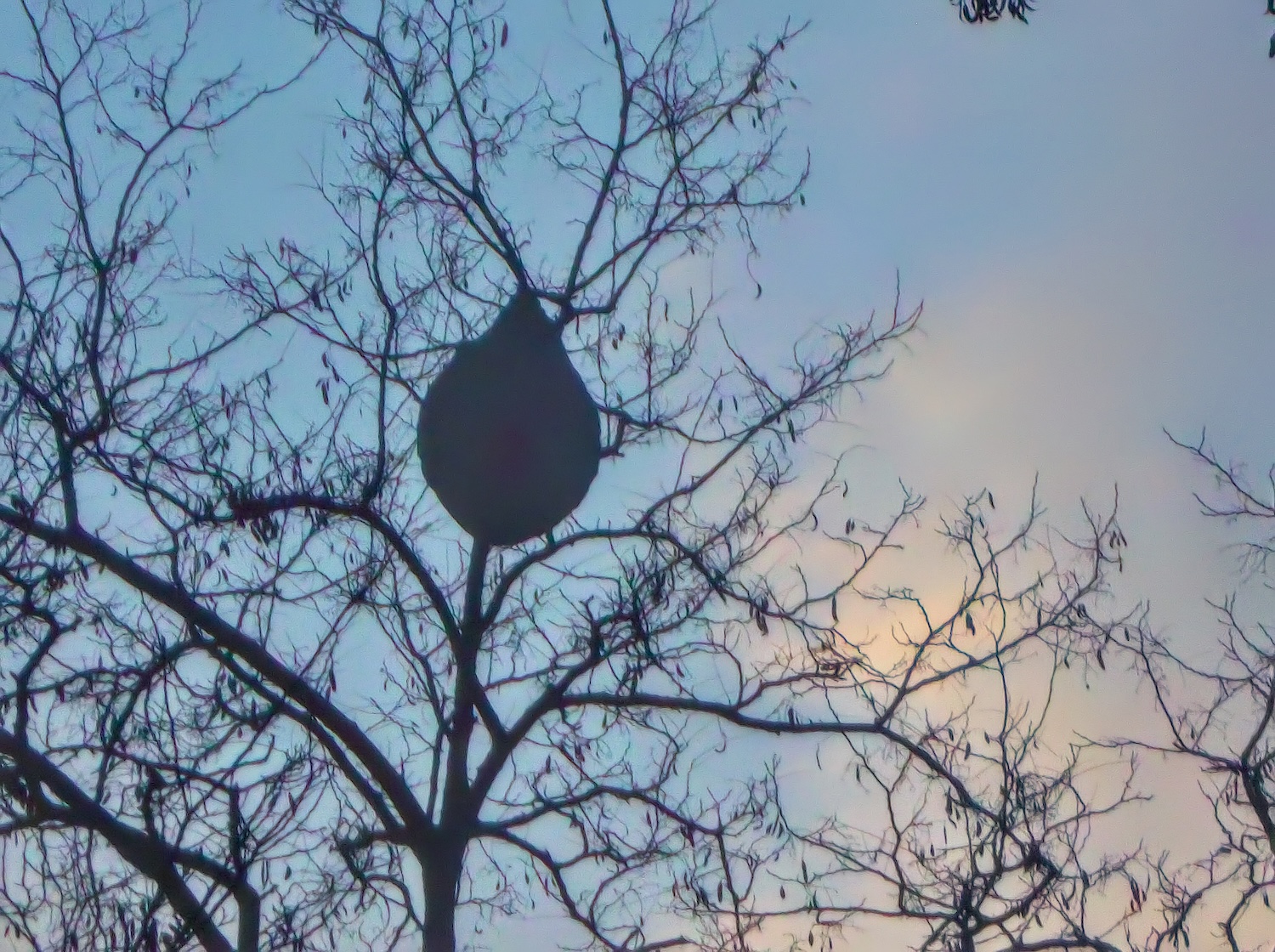 Je suis très intrigué par cette masse sombre en haut de l’arbre. Qu’est-ce ?