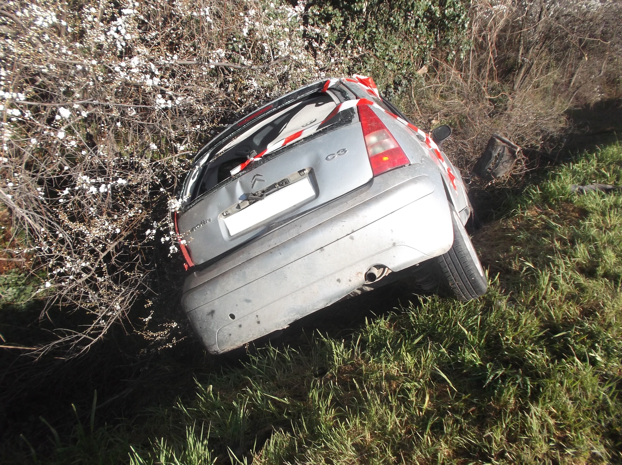La question à dix sous : Comment cette voiture a-t-elle pu avoir un accident à cet endroit-là ! Un minuscule tournant sans danger… Endormissement ? Alcool ? Drogue ? Vitesse ? Je suis toujours effaré face à ce genre d’accident.